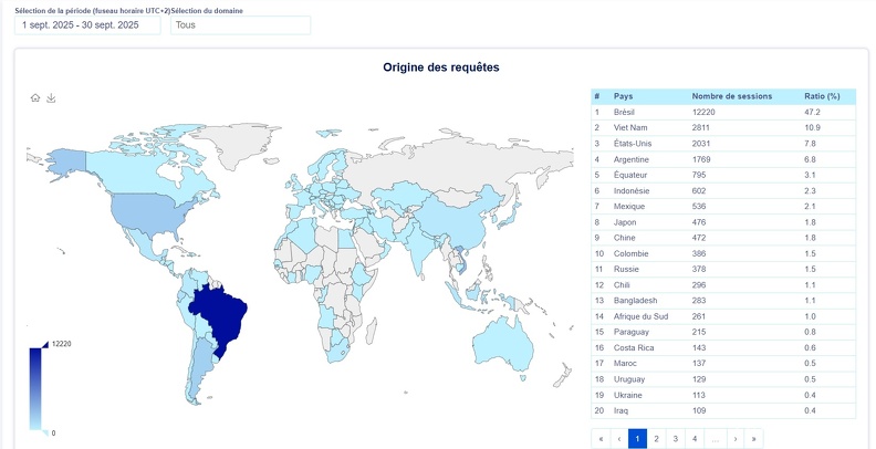 A noter que le Brésil a fortement progressé avec 20151 sessions contre 12220 en septembre